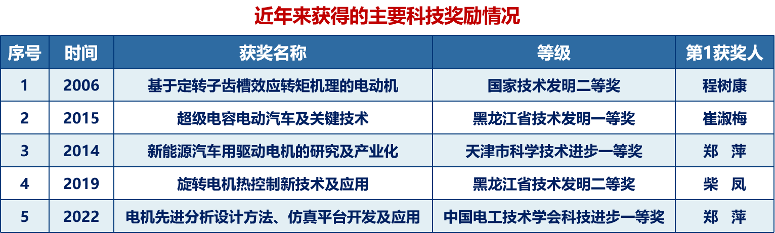 研究所科研实力雄厚,始终聚焦国家重大战略需求,瞄准世界科技前沿,面向航空航天、智能制造、智慧能源,一直致力于特种电机系统研究方向,从事特种电机系统基础理论、设计方法、驱动控制、测试评价、工程应用等方面的研究工作。承担国家重点研发计划、国家自然科学基金项目、工信部高质量专项、国家部委重大项目等国家级、省部级项目及企业合作项目100余项。在电动汽车电驱动系统、电机云计算与超算设计平台、特种车辆电传动系统等方面取得了一批国际先进水平的重大创新成果。获国家技术发明二等奖、黑龙江省技术发明一等奖等奖励及荣誉称号40余项。牵头电驱动与电推进技术教育部重点实验室、黑龙江省新能源车辆先进动力与能源重点实验室,参与机器人技术与系统国家重点实验室、水力发电设备全国重点实验室等国家级和省部级平台5个,拥有特种电机及其智能计算黑龙江省研究团队。