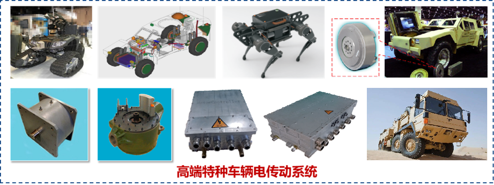 3. 高端特种车辆电传动技术:针对高端特种车辆电传动领域国外技术封锁、极端工况电机系统适应性技术亟待突破国家重大领域需求,开展特种车辆电传动系统轮集成技术的研究工作。