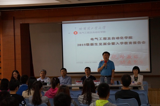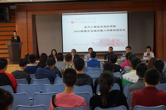 2015年9月11日下午16:00,网络赌博 2015级研究生与院领导见面会暨入学教育报告会在活动中心201隆重举行。网络赌博 院长彭喜元、网络赌博 党委副书记李岩松、自动化测试与控制系主任叶东、电气工程系主任刘晓胜、自动化测试与控制系秘书丁惠敏以及电气工程系秘书关硕出席了大会。会议由网络赌博 2015级硕士协理员张依主持。