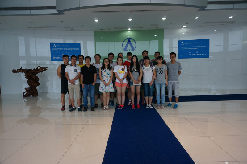 随后暑期社会实践队赴东莞松山湖工业园区参观,新能源科技有限公司是致力于可充式锂离子电池的电芯、封装和系统整合的研发、生产和营销的高新科技企业。在新能源,同学们首先见识了大企业的规模,其次被这个公司现代化的生产流水线所震撼,流水线上管理非常严格,对包含卫生与噪声的环境也控制非常好,也至于即使是一线工人,工作环境也是非常好的。再就是效率,先进的流水线保证了生产产品的效率,看着一块块电池封装出厂,真是目不暇接。