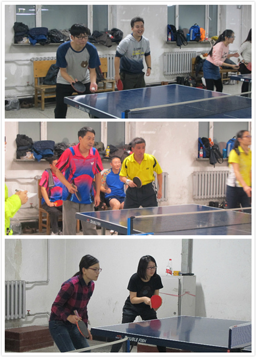 本次比赛分为男子单打、男子双打、女子单打、女子双打和混合双打共5个大项,采用淘汰制,每场比赛五局三胜11分制。在紧张而激烈的角逐中,各个选手充分发挥敢打敢拼的风格,比赛过程中出现了多次精彩的远台相持和奋勇扑救,观众们热情的掌声和叫好声此起彼伏。在双打环节中,师生们联手组队,并肩战斗,默契配合,打出了多场高水平的较量。在激烈的对战后,参赛队员们纷纷和对手握手致意,体现出友谊第一,比赛第二的体育道德风尚。经过一个上午的激烈角逐,最终于志获得男单冠军;邢晨获得女单冠军;李勇、赵永平组合获得男双冠军;阳彬、李开琴组合获得女双冠军;友谊赛环节中的混双冠军由李勇、邢晨组合获得。