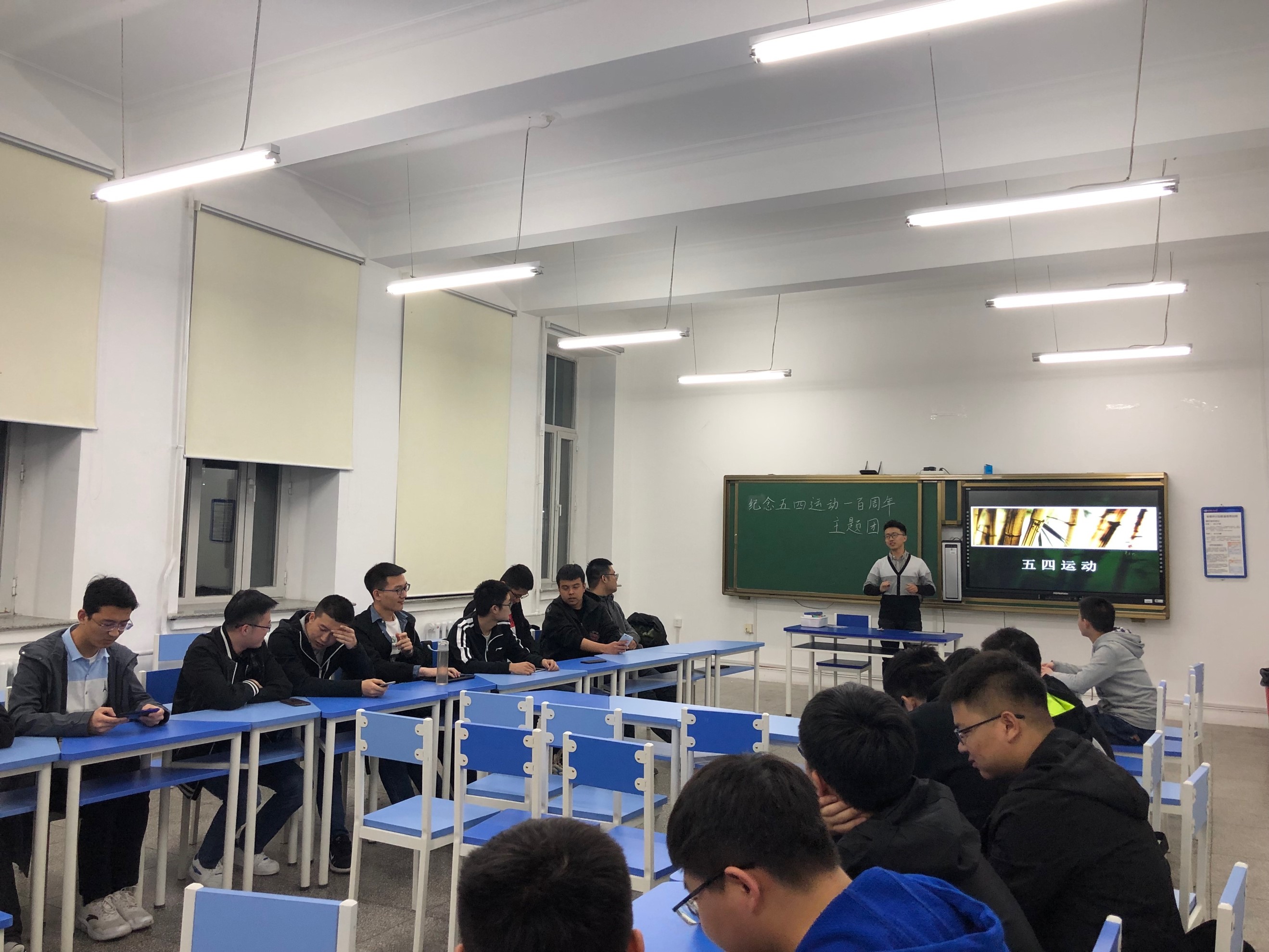 首先团支书唐壮同学带大家深入了解了五四运动的背景、五四运动的起因、五四运动的过程、五四运动的影响、五四运动的传承。五四运动直接影响了中国共产党的诞生和发展,中国共产党党史一般将其定义为“反帝反封的爱国运动”,并以此运动作为旧民主主义革命和新民主主义革命的分水岭。五四运动带给我们当代青年最宝贵的精神财富是:热爱国家、勇担重任的精神,关心社会、注重实践的精神,坚持理想、追求进步的精神。