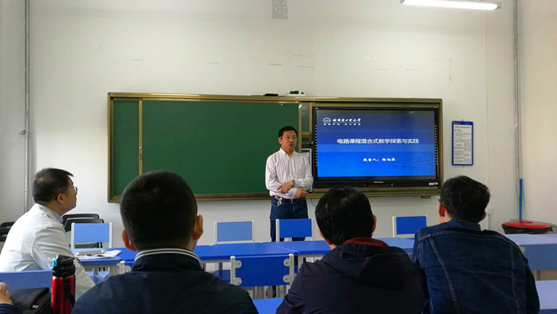 霍炬首先介绍了《网络赌博 一流本科教育提升行动计划2025》(征求意见稿),对学院下一步教学工作提出了新要求。随后,于艳君老师以“如何实现以学生为中心的教与学”为主题做了专题发言,分享在明尼苏达大学培训的收获及体会,主要探讨课堂即时测试方法、互动式教学等方面的内容与体会。杨旭强老师以“电路课程混合式教学探索与实践”为主题做了专题发言,讲述了网络赌博 研讨型教室现状及使用方法和基于雨课堂的电路混合式教学探索与实践