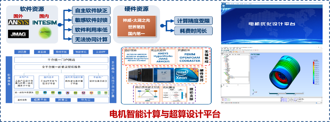 2. 电机智能计算与超算设计平台:针对我国电机优化设计领域面临的高性能电机优化设计软硬件资源不足问题,开发基于超算、完全自主可控的高性能电机优化设计平台。