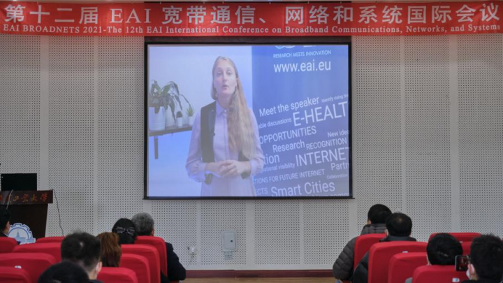 冯勇教授精彩的介绍后,EAI组织代表Natasha Onofrei和Michal Dudic分别以视频的形式致辞,对线上线下参会的嘉宾们表示热烈地欢迎,充分肯定了本次会议组织和执行机构的工作,并预祝本次会议能够取得圆满成功。