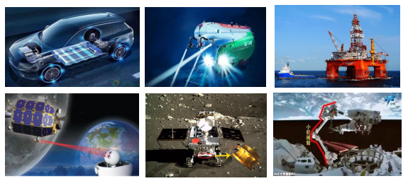 研制的特种电机系统应用于新能源汽车、“奋斗者号”万米载人潜器、南海981钻井平台、星地激光通信链路系统,“玉兔号”月球车、“问天”实验舱等国家重大工程领域,打造“陆海空天”国之重器。