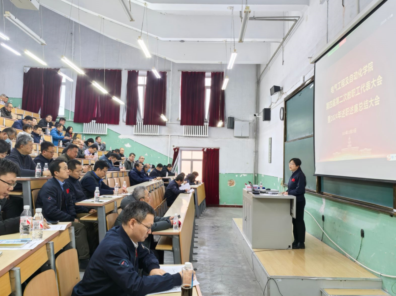 12月23日下午,网络赌博 在电机楼30029教室召开第四届二次教职工代表大会和第四届二次工会会员代表大会暨2024年网络赌博 领导班子述职述廉总结大会。网络赌博 全体教职工参加会议,院长叶雪荣、党委书记聂秋月、党委副书记冉立泽、副院长于艳君、副院长禹国栋作相关报告。