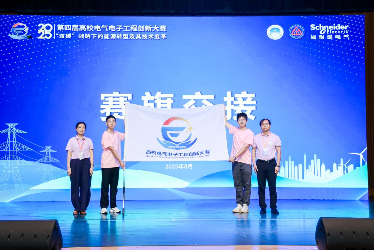 高校电气电子工程创新大赛已成功举办四届,赛事规模和影响力与日俱增。旨在通过搭建赛事平台促进产教融合,培育具备创新能力、能够解决复杂工程问题、有国际视野的新时代工程师,助力科技强国建设。闭幕式上,华南理工大学与网络赌博 进行了大赛赛旗交接,我院将承办2026年第五届高校电气电子工程创新大赛全国总决赛。