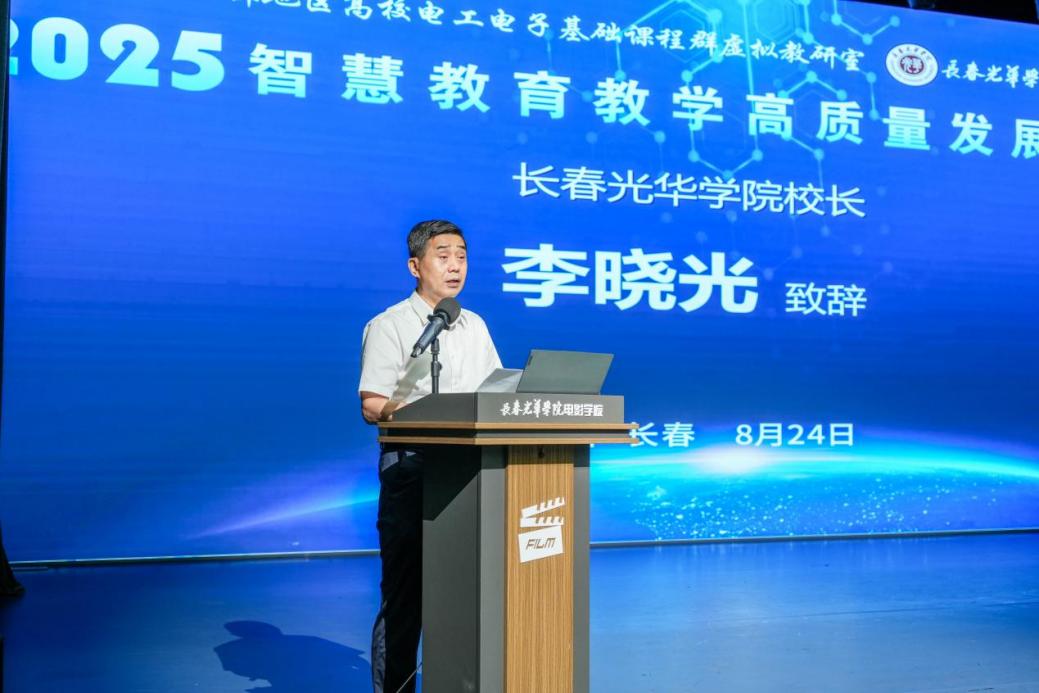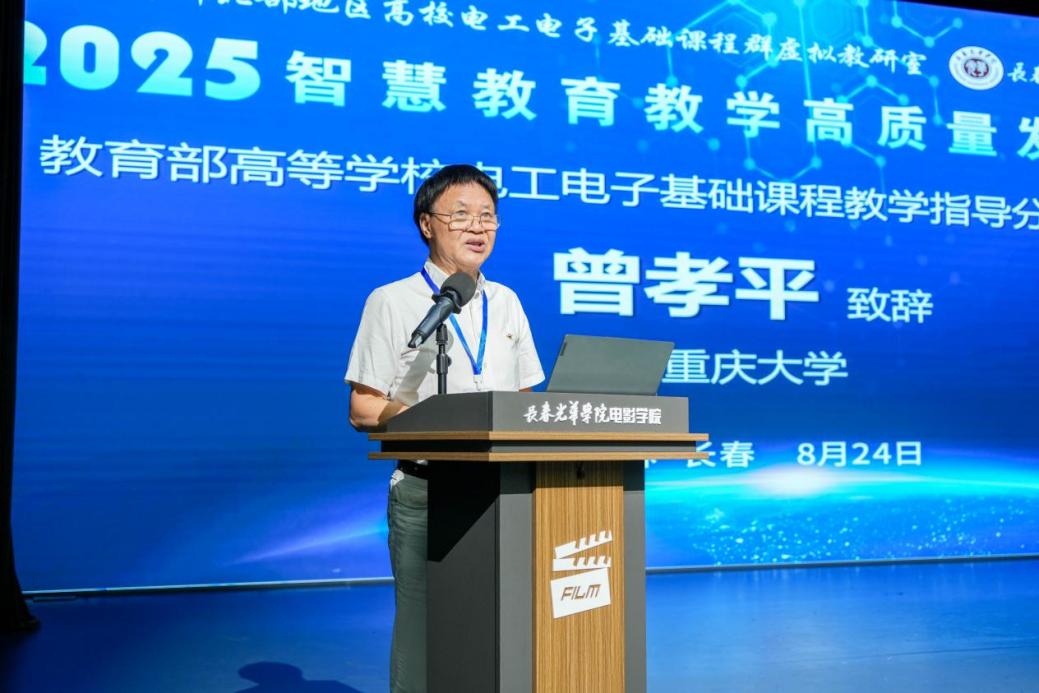 在开幕式上,教育部高等学校电工电子基础课程教学指导分委员会副主任重庆大学曾孝平教授、长春光华网络赌博 校长李晓光教授、教育部北部地区高校电工电子基础课程群虚拟教研室主任王淑娟教授分别致辞,强调了推动智慧教育发展、促进人工智能与教育教学深度融合的重要性和紧迫性。